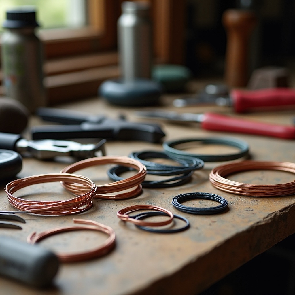 – Kupfer: Geschätzt für seine Erschwinglichkeit und Biegsamkeit, ist Kupferdraht hervorragend für Anfänger, die mit verschiedenen Durchmessern experimentieren. Im Laufe der Zeit oxidiert es und verleiht einen rostikalen Charme, es sei denn, es wird versiegelt.